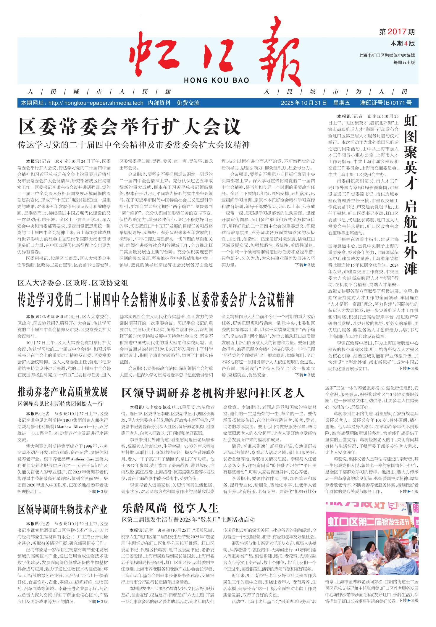 本报讯(记者 曲姗姗)10月25日,“乐龄风尚、悦享人生”虹口区第二届银发生活节暨2025年“敬老月”主题活动在虹口区和平公园拉开帷幕。虹口区委副书记、代理区长蒋蕊,虹口区委副书记、老龄委主任姜爱锋,上海市民政局副局长娄国剑,上海市委老干部局副局长张家科,虹口区副区长、老龄委副主任章维,上海市养老服务和老龄产业协会会长李勇,上海市老年基金会副理事长兼秘书长孙萍,交通银行上海市分行副行长童洁萍出席活动。