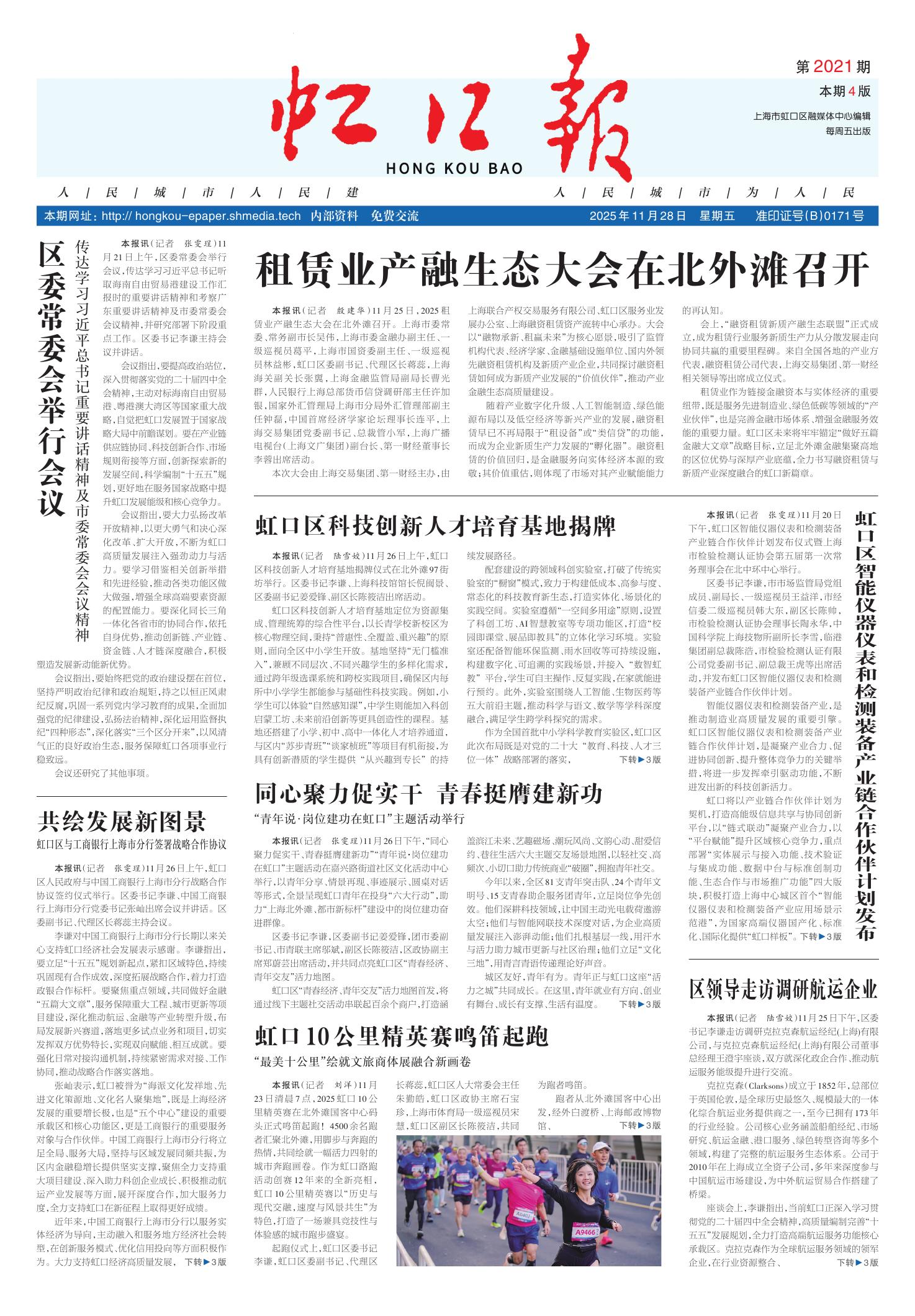 租赁业作为链接金融资本与实体经济的重要纽带,既是服务先进制造业、绿色低碳等领域的“产业伙伴”,也是完善金融市场体系、增强金融服务效能的重要力量。虹口区未来将牢牢锚定“做好五篇金融大文章”战略目标,立足北外滩金融集聚高地的区位优势与深厚产业底蕴,全力书写融资租赁与新质产业深度融合的虹口新篇章。
